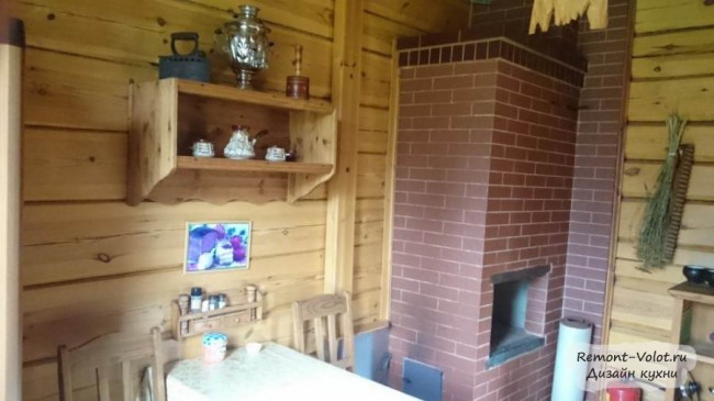 С одной стороны все должно быть аккуратно и чисто, а с другой никаких расшитых швов и строгих линий. Помните, деревенский домик строился без уровня из самопального кирпича. Местами стена могла просесть, местами у мастеров не хватало цельного материала. Особенно удачна будет такая отделка на кухне, где успешно справится с ролью фартука.