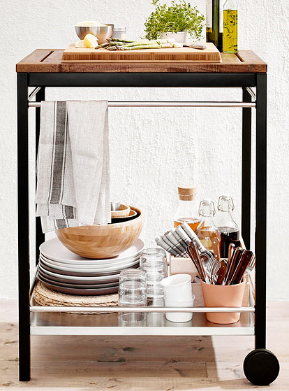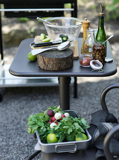 Передвижной стол может служить как дополнительная рабочая поверхность для барбекю, как обеденный стол для беседки или как барная стойка для напитков.
