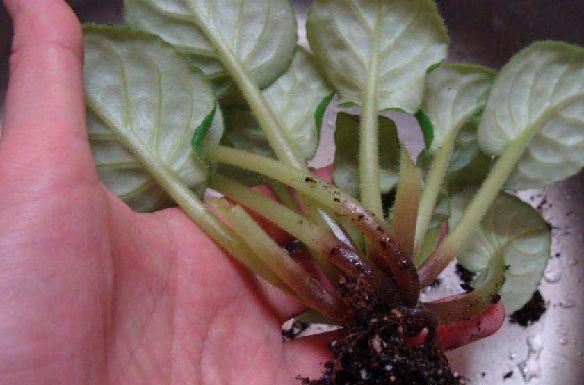 - Корневая гниль — проявляется в вялости листьев, пожелтении и гнилостных процессах. Куст вынимают из горшка, осматривают. Если на срезе черенков есть гниль, растение не удастся спасти. Можно срезать лист из верхнего ряда и укоренить его, но при условии чистого среза. Спасённое растение опрыскивают «Фитоспорином-М» 1,5 г/1 л воды, пересаживают в чистый, обеззараженный грунт.