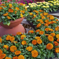 Низкорослые сорта календулы часто используют для контейнерных посадок – соло или для создания различных цветочных композиций. Принцип посадки календулы в контейнеры тот же, что и при посадке в ОГ.