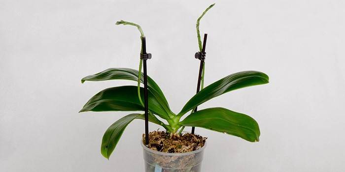 Обычно срез делают, оставляя 3 нижние почки, пенёк должен быть не меньше 2 см. Иногда, летом на цветочной ветке появляется молодой отросток. С его помощью орхидею можно размножить. Оставьте этот отросток на стебле около 6 месяцев, пока у него не вырастут корешки и 2 листа.