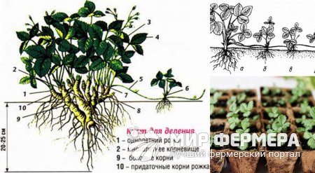 Селекционеры предпочитают размножать культуру семенным способом, так как этот метод отлично подходит для выведения новых гибридов и сохранения видовых характеристик определенного сорта. В домашних же условиях ремонтантная клубника лучше всего размножается вегетативно: делением куста и усами (рисунок 9).